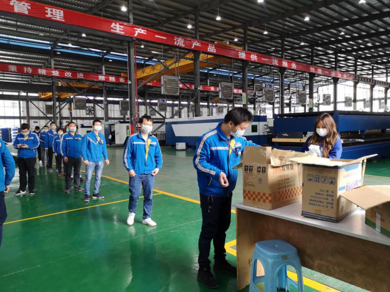 大族激光智能裝備集團管理層毫不懈怠、科學(xué)部署防控工作與經(jīng)營戰(zhàn)略,創(chuàng)新工作方式,全力支持防控的企業(yè),為徐工集團、中集集團、宇通客車等工程機械、特種車、醫(yī)療器械行業(yè)企業(yè)客戶,以及口罩機生產(chǎn)企業(yè),提供光纖激光切割機、激光切管機、激光焊接系統(tǒng)與自動化生產(chǎn)線等高端激光裝備系統(tǒng)解決方案與增值服務(wù)。大族激光緊密關(guān)注疫情防控,針對急缺的口罩等情況,組織研制N95口罩生產(chǎn)線,基于先進的焊接與自動化技術(shù),實現(xiàn)穩(wěn)定生產(chǎn)、快速交付,確保物資供應(yīng)。