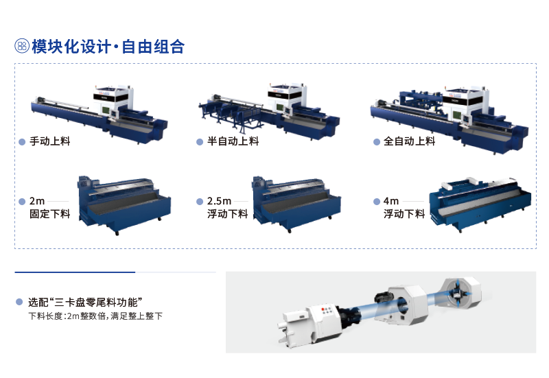 TD系列雙卡盤激光切管機(jī)采用模塊化設(shè)計(jì),可選擇手動(dòng)上料、半自動(dòng)上料、全自動(dòng)上料等多種上料方式,以及可選配4米或2.5米浮動(dòng)下料裝置,并搭載大族專利的伺服輔助支撐裝置,切割過程中防止管材下垂,提高加工精度,加工更省心。